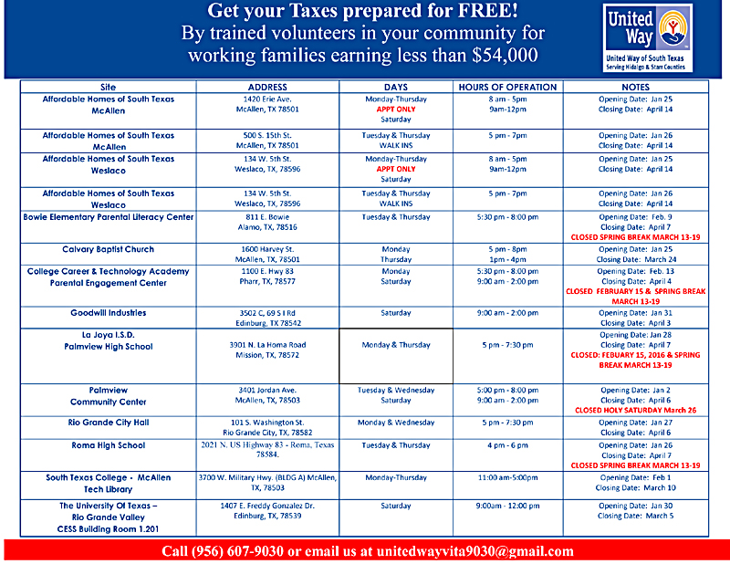 Volunteer Income Tax Assistance provided by United Way of South Texas