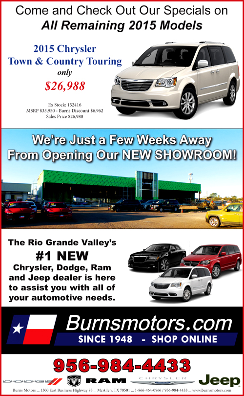 contacted at 956-984-4454 or by email at biglew@burnsmotors.com