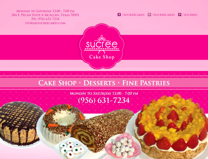 Originally located at 624 W. Pecan Blvd. in McAllen, Sucrée can now be found at 304 E. Pecan Blvd. Suite A, just west of the main post office. When you come to Sucrée you will discover that the love for baking is evident when you first bite into one of those flavorful creations. Only the highest quality and freshest ingredients are used and they are always baked from recipe. You won't find the same texture and flavor at another bakery or cake shop. Sucrée's menu includes Mexican recipes, as well as American recipes and French recipes. Customers return time after time because they know that they will always find consitent quality in all of Sucrée's items.